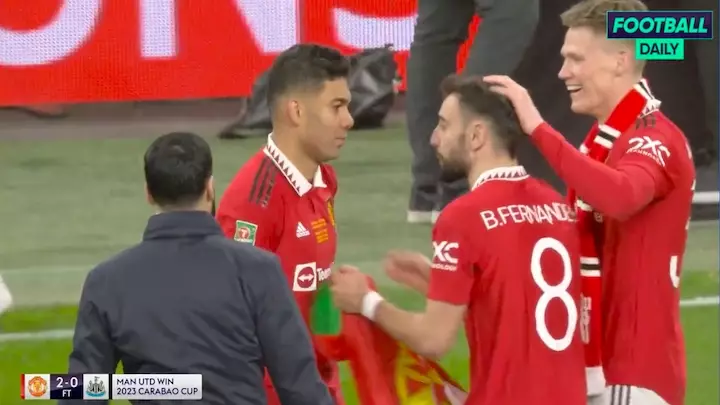 曼聯於英格蘭聯賽盃決賽擊敗紐卡素後,終打破6年冠軍荒,理應值得高興。不過,有片段影到卡斯米路和般奴費南迪斯完場後卻發生爭執,估計是針對後者臨尾錯失黃金機會,但名宿堅尼反認為這證明球員充滿爭勝心。