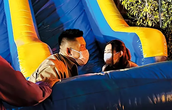 玩完一輪遊戲後,班長捉住女友玩充氣滑梯;而滑下來時,女友便嚇得不停大叫。
