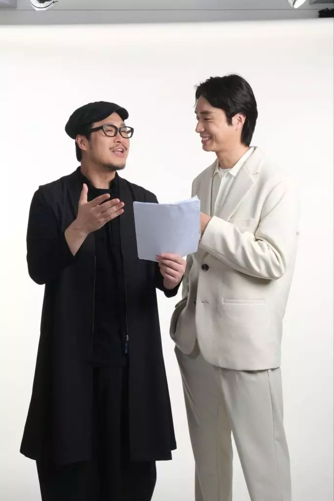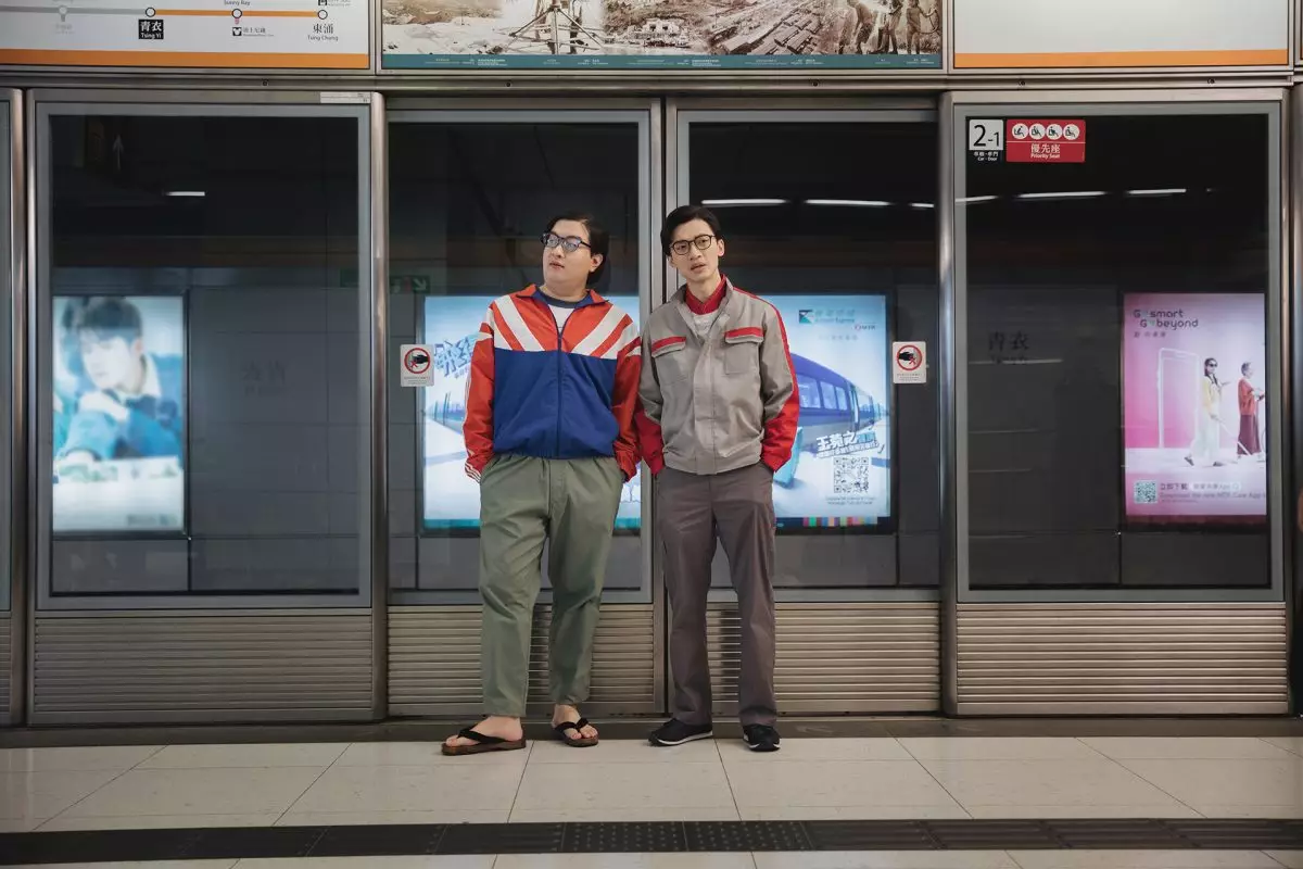 陳湛文(右)伙拍肥腸(徐浩昌)(左)為港鐵拍攝廣告。