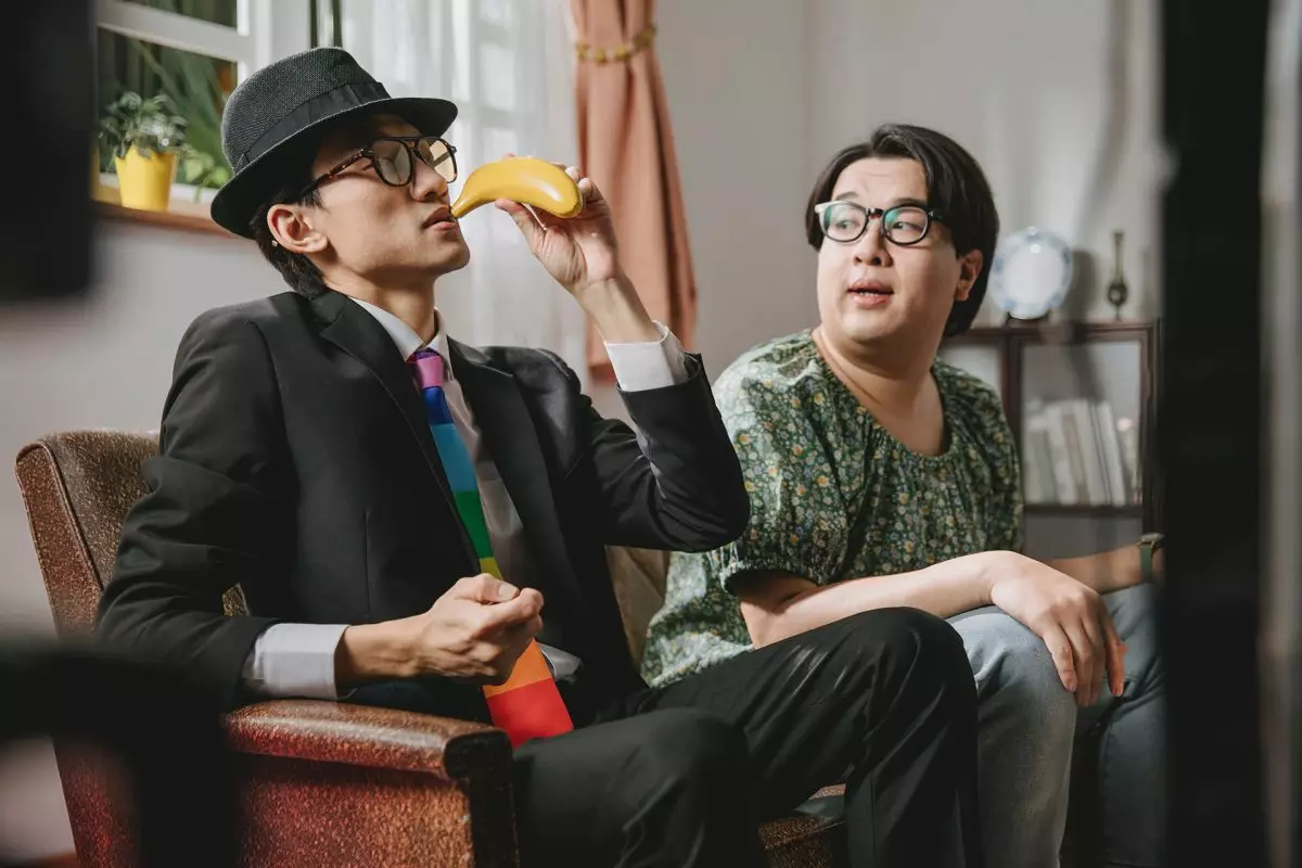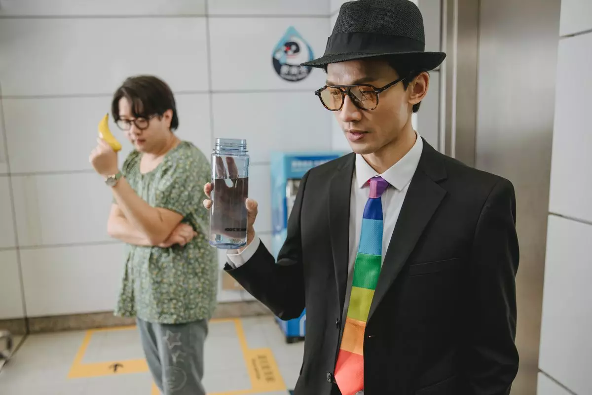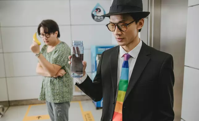 陳湛文與肥腸重演《國產零零漆》經典場面。