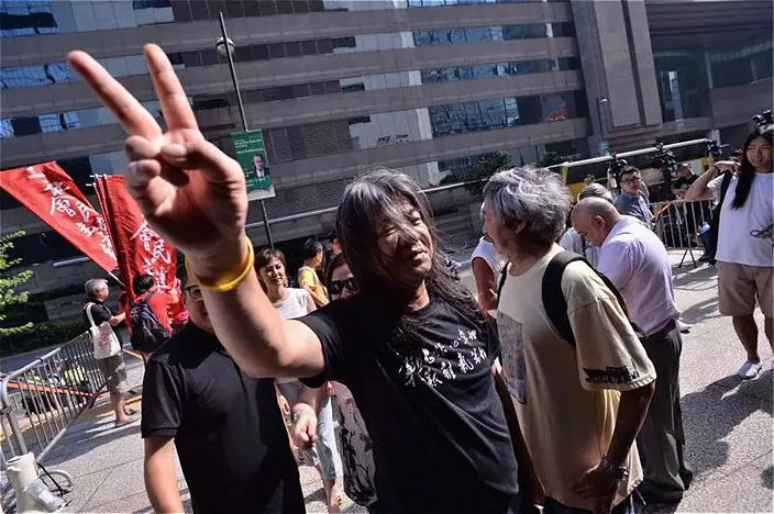 梁國雄在支持者陪同下出庭