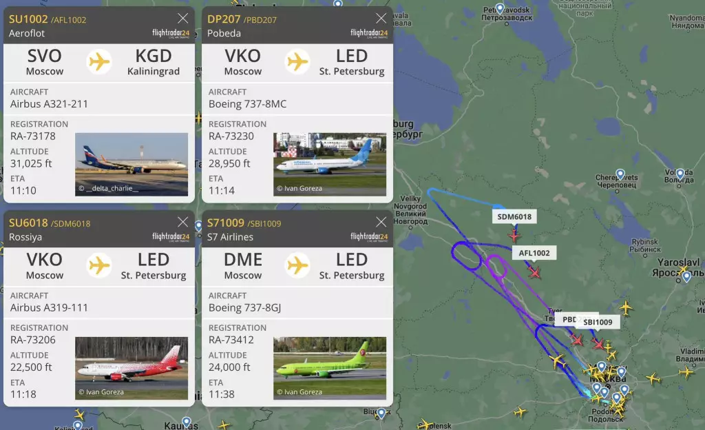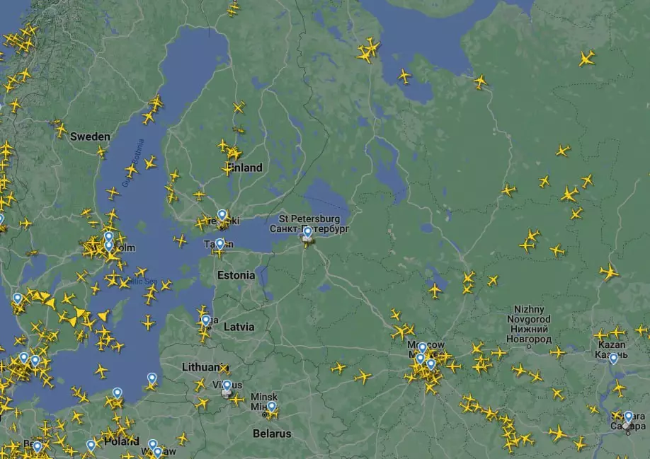 航班追蹤網站Flight Radar數據顯示,許多飛往聖彼得堡的國內航班返回起飛地,領空關閉似乎也影響了飛往俄羅斯飛地加里寧格勒的航班,因為相關航線需要飛越聖彼得堡。