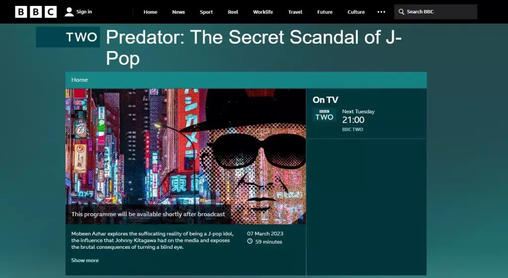 英國《BBC》在官網公開《獵食者:J-Pop的秘密醜聞》預告。