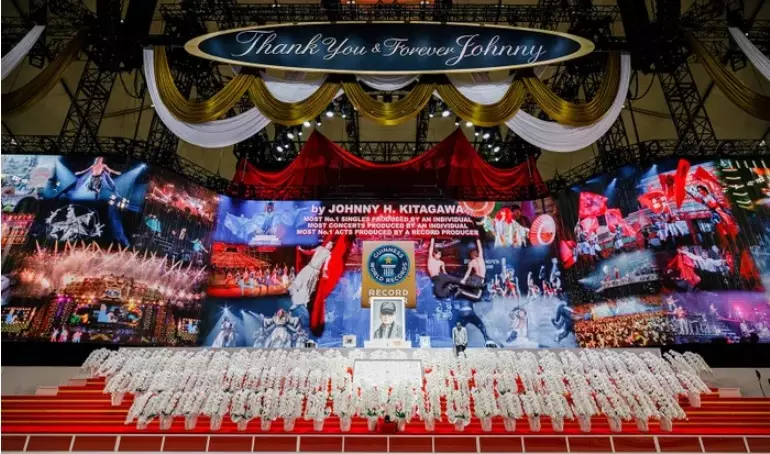日本尊尼事務所社長Johnny喜多川的追思會,場內放有其遺照及播放尊尼藝人的片段。