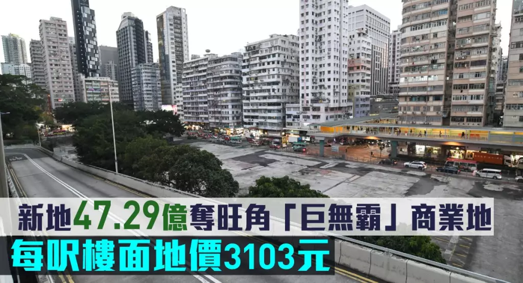 旺角洗衣街「巨無霸」商業地上周共接獲3份標書,招標結果揭盅,由新地以47.29億力壓2財團奪標,每方呎樓面地價約3103元。
