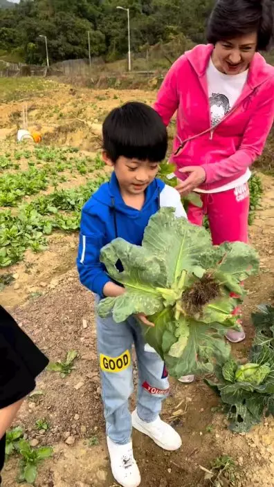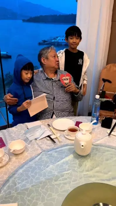 晚上一家人去食飯,孫仔仲攬實爺爺,𠱁得洪金寶好開心。