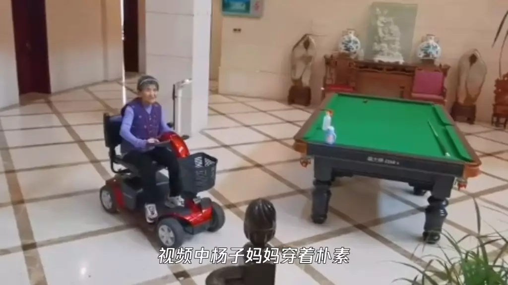 楊子和黃聖依的單位絕非用「闊落」可以形容,大門口位置有一對花式鐵門大,屋內佈置更為誇張,先見到一條宮廷式旋轉樓梯,客廳空間面積大如一個籃球場,天花位置掛有一組巨型水晶吊燈,正中位置擺放一張巨型紅色地毯,家具以中式木製為主,除了有各式各樣花瓶﹑玉石﹑玉像等古董擺設外,更放有一張桌球枱,楊子媽媽在室內出入都揸電動車!