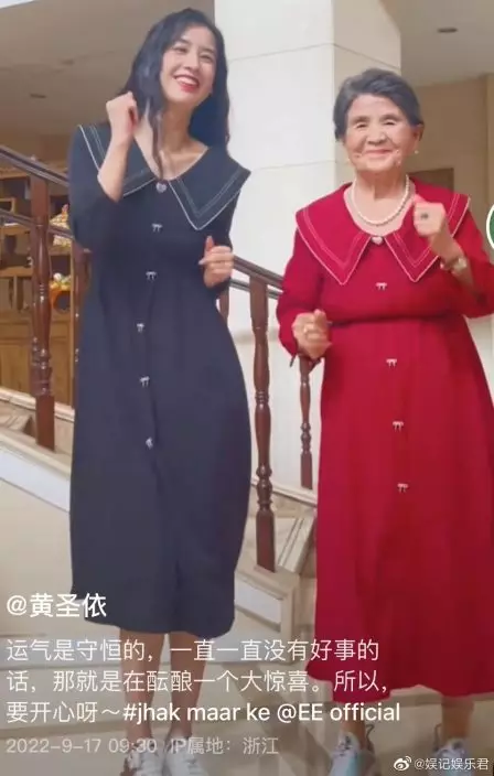 黃聖依上周貼出與奶奶在豪宅着情侶裝跳舞的影片。