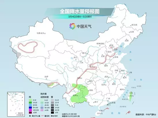 中央氣象台預計,3月3日新疆北疆北部、川西高原南部等地部分地區有小雪或雨夾雪。江南南部、西南地區南部、華南北部、廣西西南部、台灣島等地部分地區有小雨,其中,雲南東南部等地部分地區有中雨。