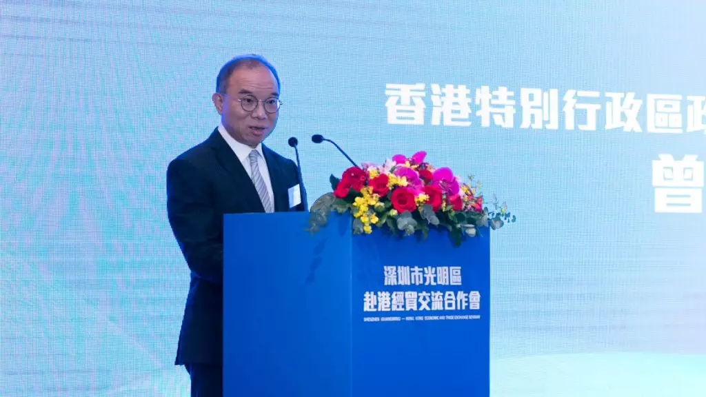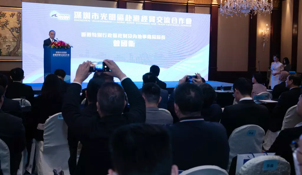 政制及內地事務局局長曾國衞出席深圳市光明區赴港經貿交流合作會。政制及內地事務局fb圖片