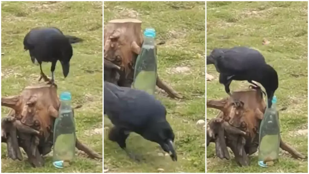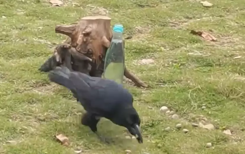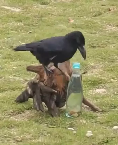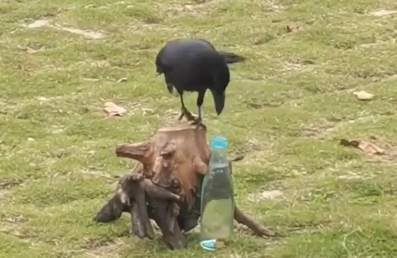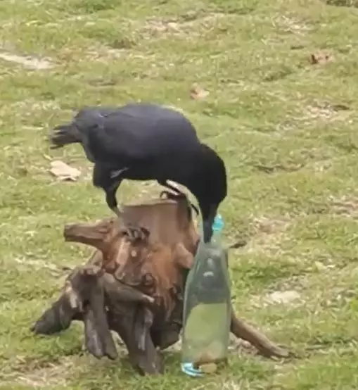 近日,一段影片引起起網友熱議:在某公園裏,一隻烏鴉用口叼石子投入水瓶,試圖從中取水喝,竟和伊索寓言故事《烏鴉喝水》中描述的情節一模一樣。事後,有內地媒體調查發現,「烏鴉喝水」的場景發生在廣東惠州的一公園裏,園內工作人員表示,這是烏鴉的天性,但亦有人為的訓練。