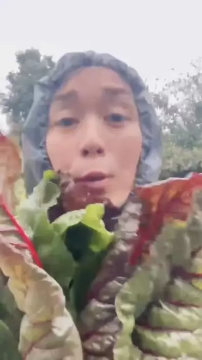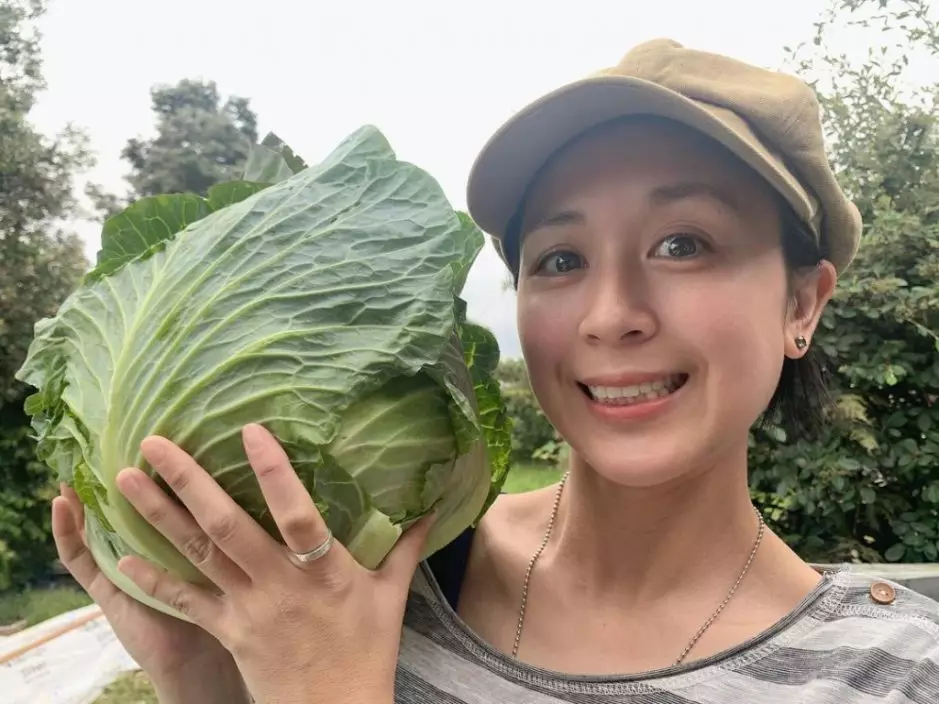 唐寧曾於IG分享收割農作物的照片,可見蔬菜又新鮮又大棵。