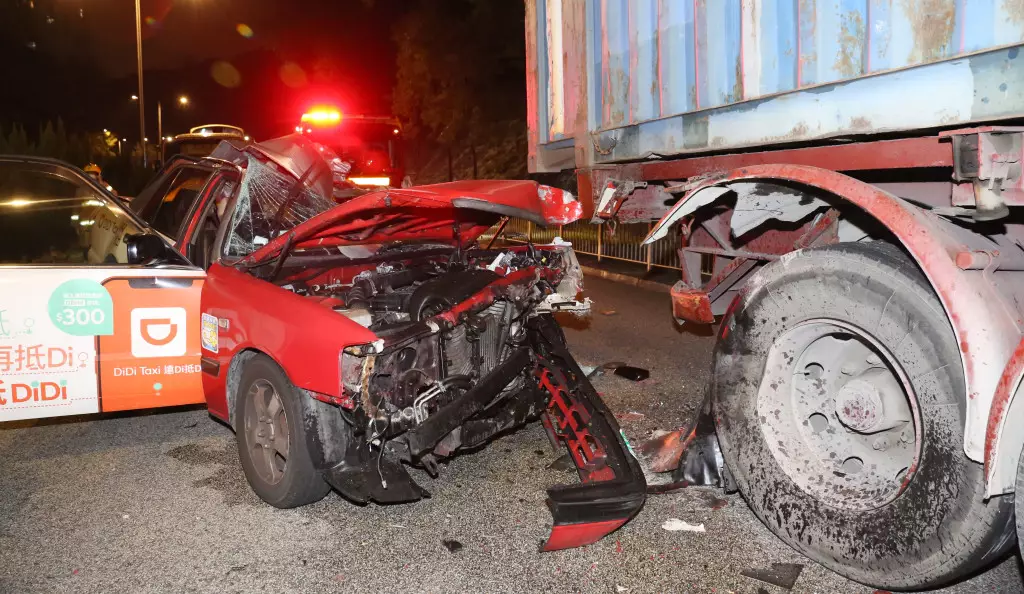 1月4日黃大仙一部的士,猛撼路邊貨櫃車車尾,乘客不治77歲司機被捕。資料圖片