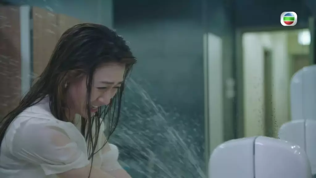 在《下流上車族》,有一幕林敏驄一打開公廁門門就見到全身版水喉噴濕晒嘅黃嘉雯。
