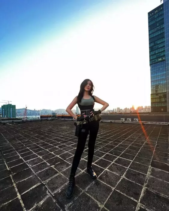 劉佩玥以「盜墓者羅拉」造型大晒事業線。