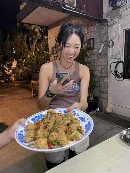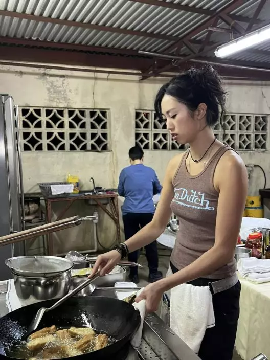呂康玲4年前找名師學廚,是因為呂康玲喜歡拋鑊的感覺,女子要拋起重重的鑊並不易,可見她臂力強勁!