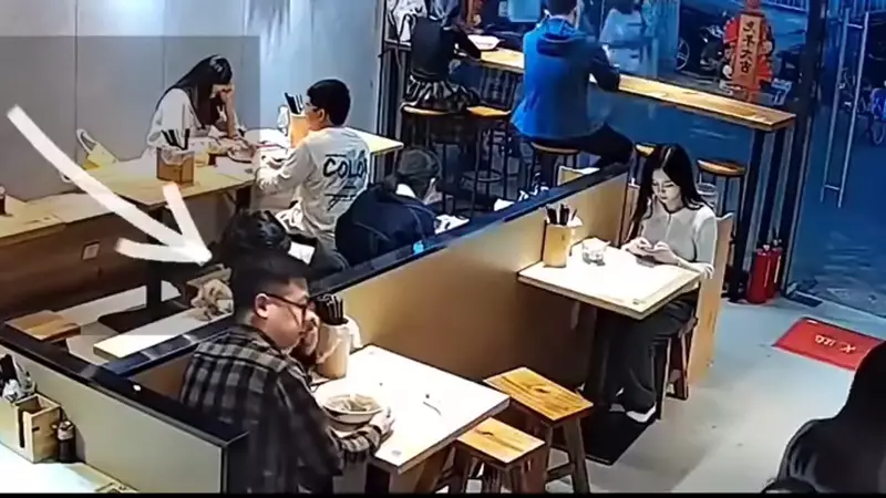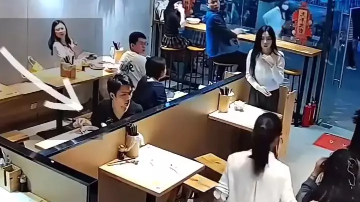 內媒報道,事發在周日(3月5日)廣州一間麵館內,從CCTV可見,男子當時單獨坐在其中一張枱,他吃完麵後,好像「等待時機」,不時左顧右盼,更時周圍望,疑似尋找目標,然後他好像瞄著隔壁枱的女生,之後將湯匙拿走,趁無人注意時,突然拿起麵碗,跑去「目標」女生旁,將裝著湯的碗倒扣到女生頭上,隨後拔腿就跑,女受害人大吃一驚,狼狽地整理頭髮,在場的食客都被嚇到了。店家表示,事發後已經報警,據了解,男子與女生並不認識。