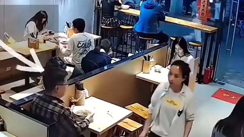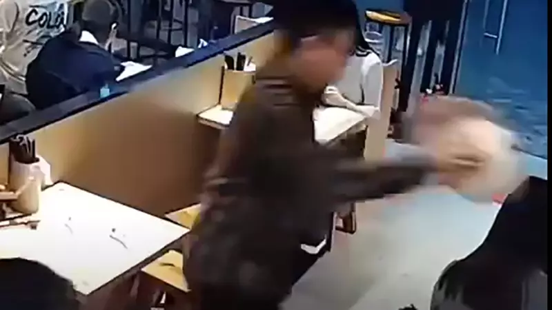 廣州怪男突襲陌生女食客 以麵湯淋頭後火速逃去