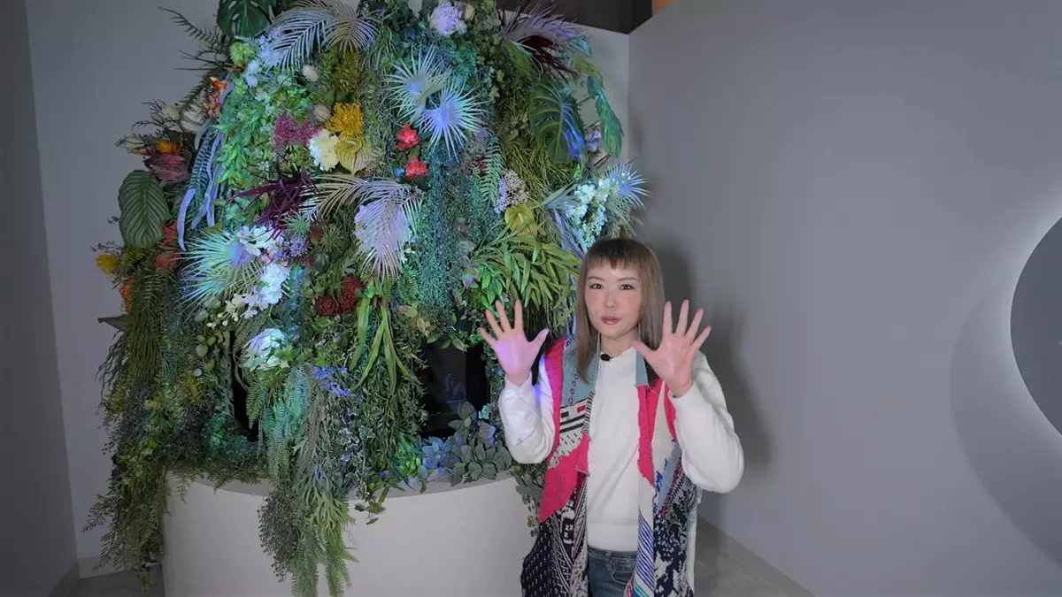 用家進入體驗前,需在入口處接受一大輪問題測試,包括睡眠、飲食、運動及感情狀況!未料有此一著的Helen先是十分驚訝,但話明「臨老入花叢」的她最終毅然放下偶包,豪爽地承認:「本小姐已經有9年冇拍過拖,仲冇人追添!」完成一輪「你問我答」,玩家將根據測試結果獲得適合自己的香薰、花茶及特飲。除了好玩又治癒,該個展覽更相當有「睇頭」,除了有特色的大型花卉擺設及色彩燦爛的花卉投影,還有以藍色為主調的鑽石花園及其他主題花園,啱晒打卡。