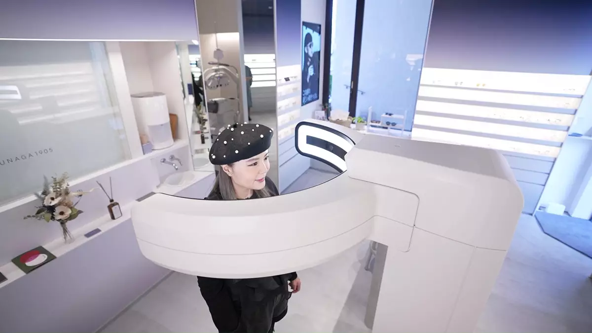 下北沢呢間百年眼鏡店,即場將Helen個樣透過3D掃瞄機scan入電腦。