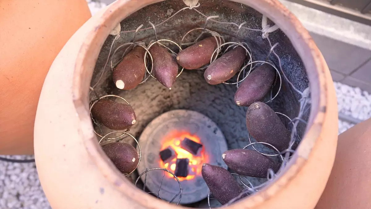 蕃薯用陶壺炭烤後新鮮出爐,都好特別。