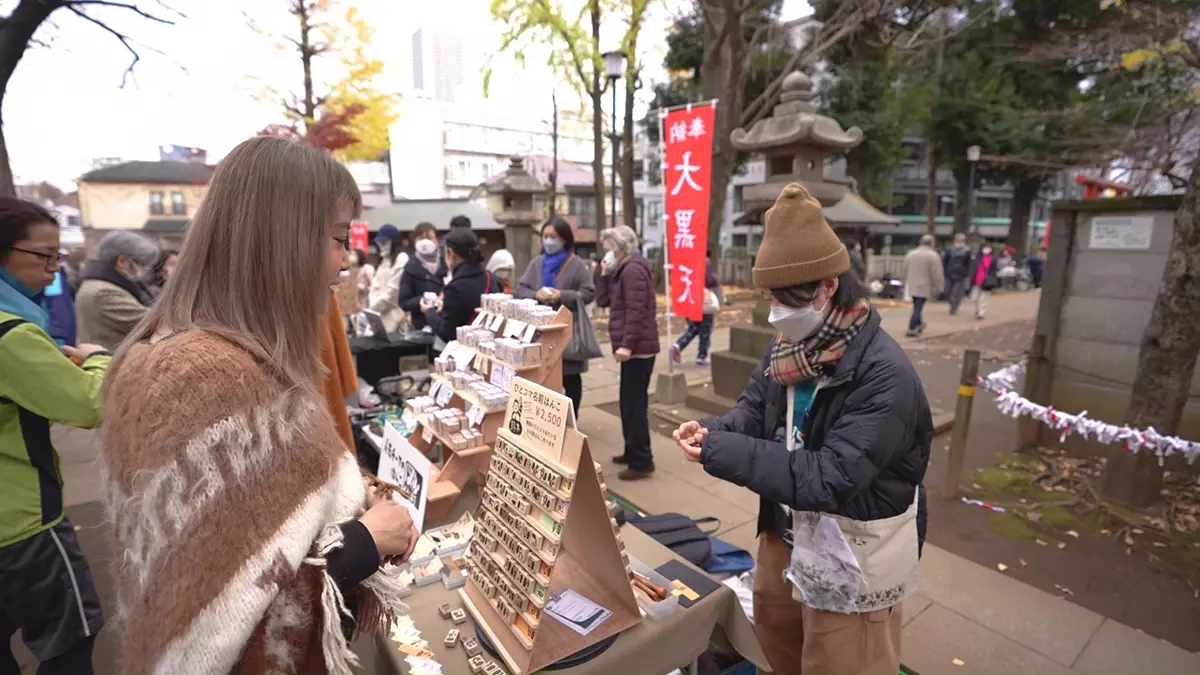 Helen帶觀眾去到鬼子母神堂外面嘅限定巿集睇handmade製品。