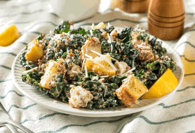 植物油健康食譜羽衣甘蓝雞肉沙律。
