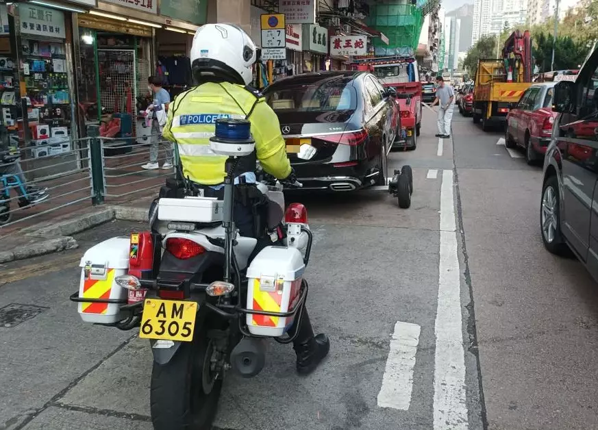 深水埗警區聯同西九龍總區交通部8日在區內進行重點交通執法行動,針對與行人、單車及違例泊車相關的交通罪行進行嚴厲執法,確保道路暢通及提高道路使用者的道路安全和守法意識,以保障市民安全。