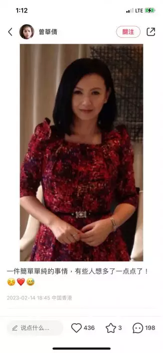 被網民砲轟行為不當的曾華倩即出Po表示:「一件簡單單純的事情,有些人想多了一點點了!」