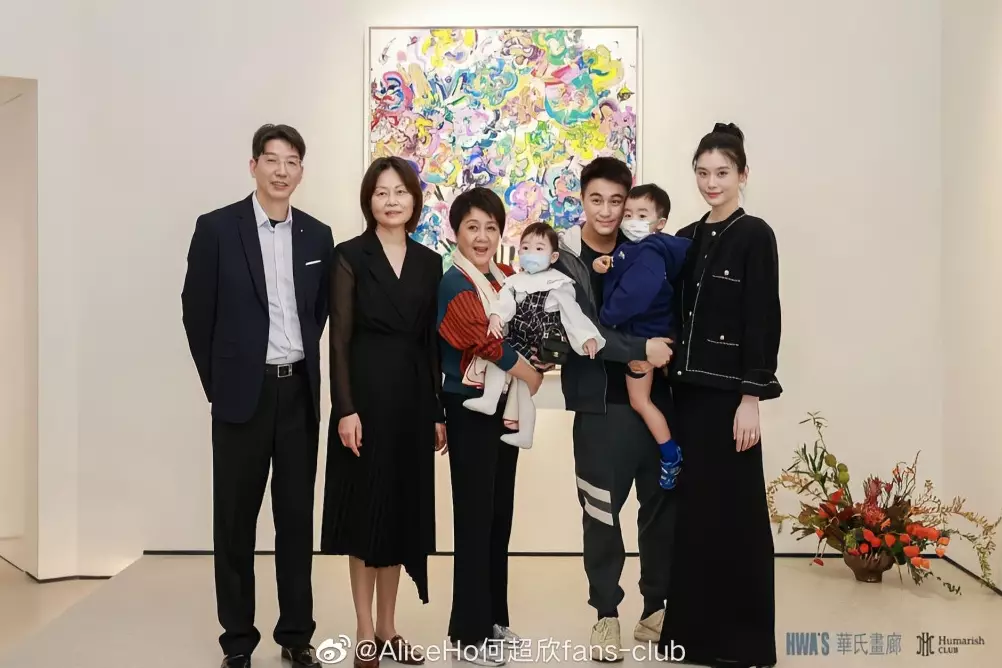 早前奚夢瑤、何猷君一家四口與四太梁安琪出席畫廊開幕。