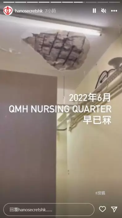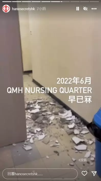 瑪麗醫院表示,醫院護士學校二樓走廊去年6月10日接獲同事通知,有天花石屎物料掉落地上。有關地點並非臨床範圍,事件中沒有病人和職員受傷。院方十分關注事件,醫院設施管理組已於去年6月即時進行相關檢查及維修,確定結構安全。院方當時亦已透過早期事故通報系統通報事件。