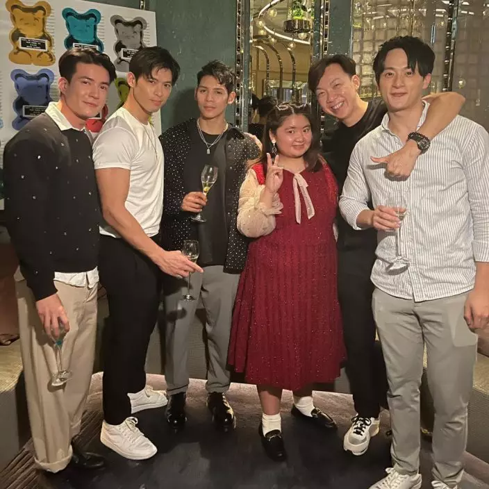 被多位大隻型男包圍,何嘉珍變小女生面紅紅賣萌!