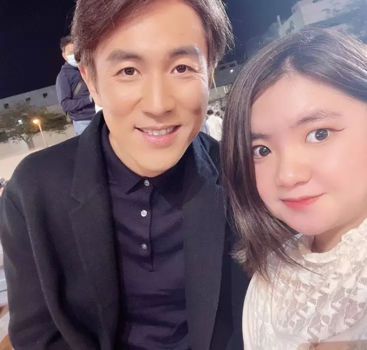 梁勇仲有同胡慧中合照。