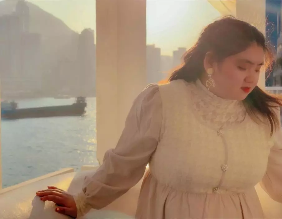 其中一張坐着拍的照片雖然曝光了她的身形不如其他KOL纖瘦,但何嘉珍亦不怕再因身形肥胖受批評而修圖。