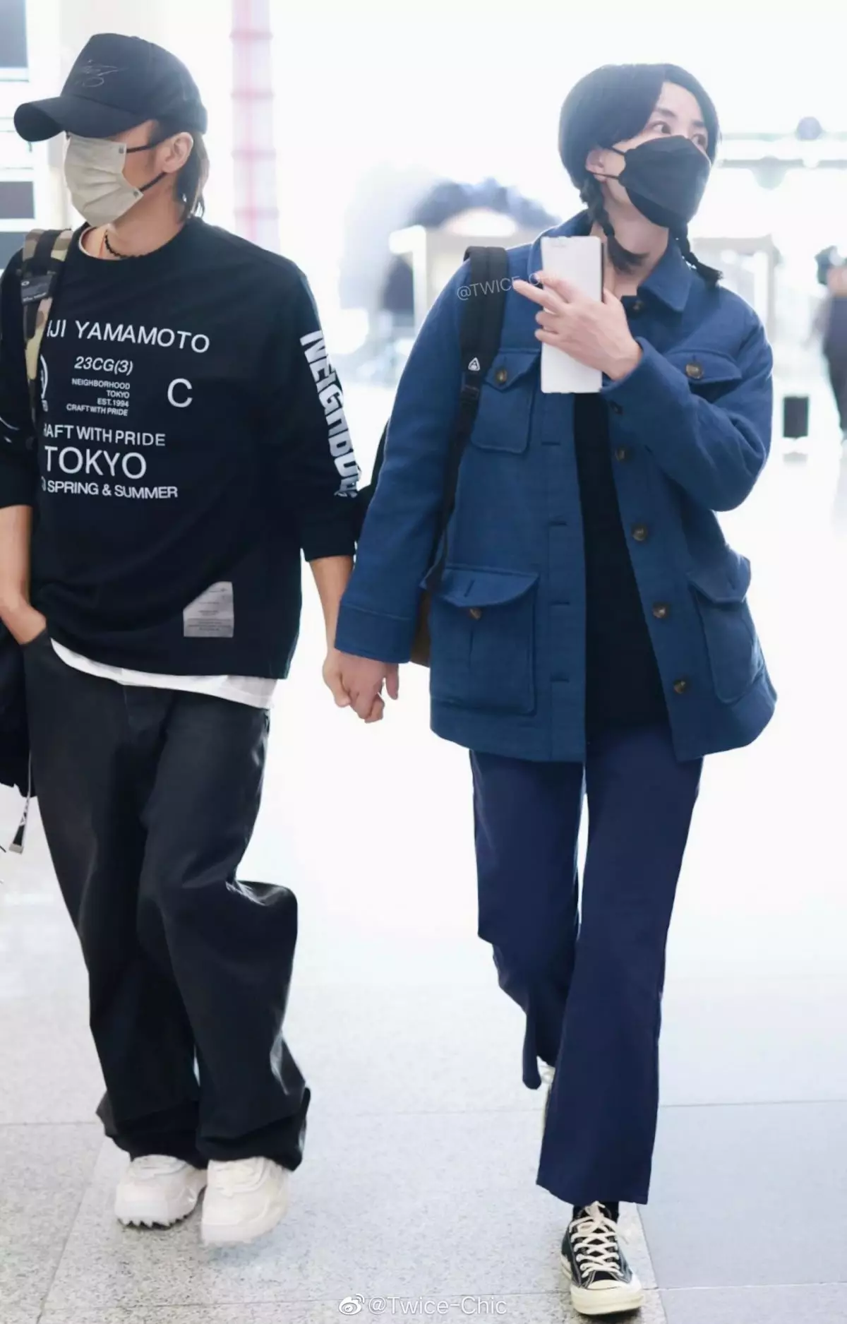 王菲與謝霆鋒現身北京機場。(圖片:Twice-Chic微博)