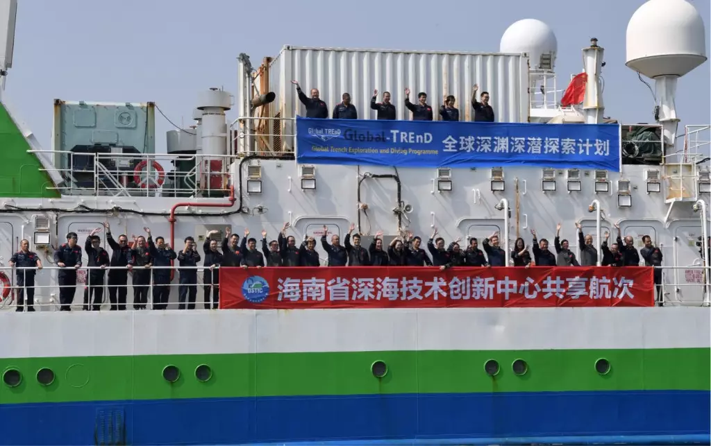 「探索一號」科考船11日下午搭載「奮鬥者」號載人潛水器,圓滿完成了國際首次環大洋洲載人深潛科考任務,順利返回海南三亞。