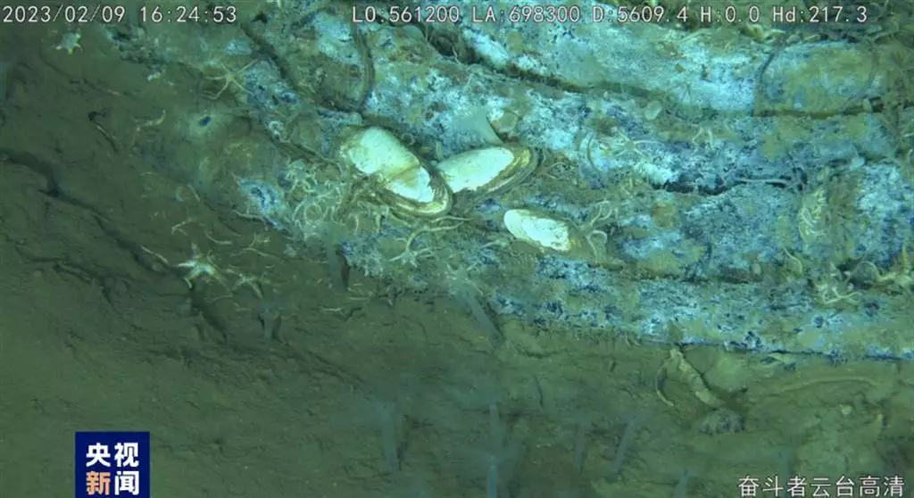 「奮鬥者」號高清拍攝海底畫面。 央視新聞
