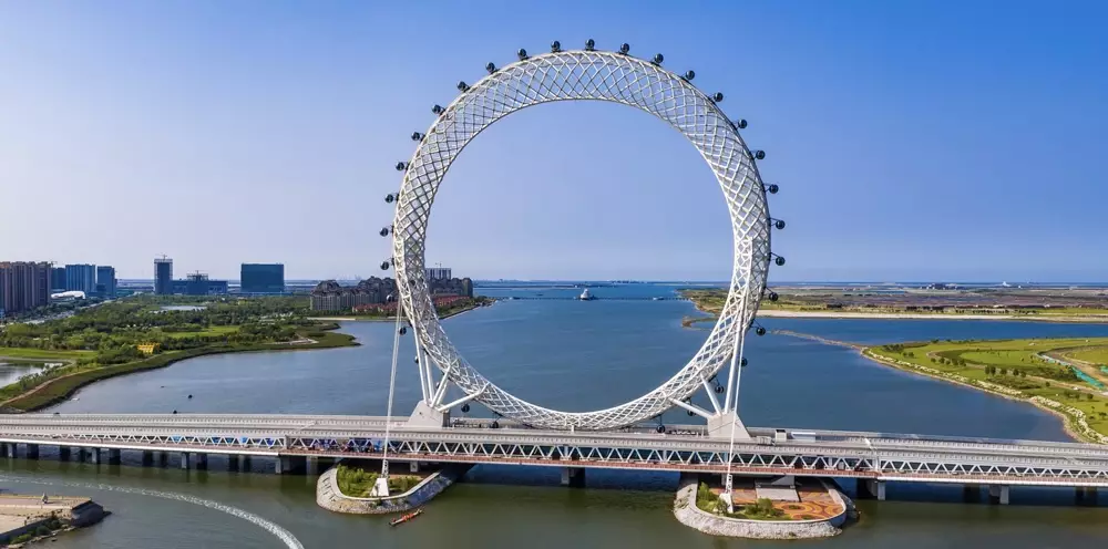 現今全球最大的無軸摩天輪是中國山東濰坊市的「渤海之眼」,高145米,有36個懸掛式觀景艙,每個可以乘坐10人,繞完一周遊程為30分鐘,遊客在最高點可以俯瞰白浪河全景。