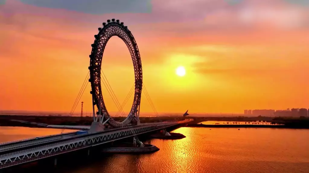 山東濰坊無軸摩天輪「渤海之眼」高145米。 百度圖片
