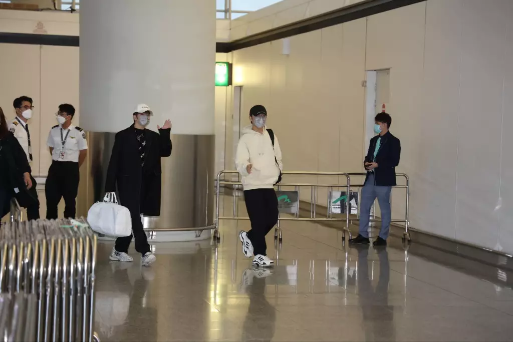 粉絲在偶像出現前已逼滿通道,Anson Lo與Edan這對「登神CP」以黑白絕襯造型亮相,禮貌地向粉絲揮手和鞠躬,粉絲興奮叫囂。二人現身短短數十秒,由職員通道進入辦出境手續。