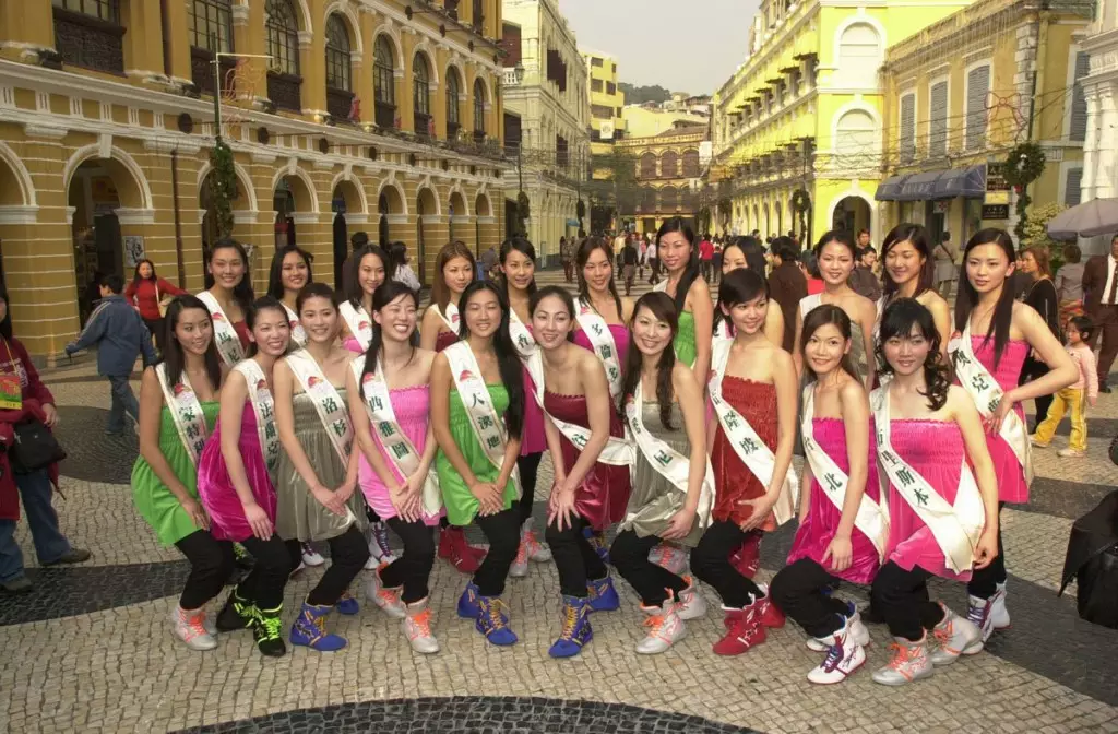 楊秀惠(前排右三)2003年參加馬來西亞華裔小姐競選奪冠,翌年來港參加國際華裔小姐。