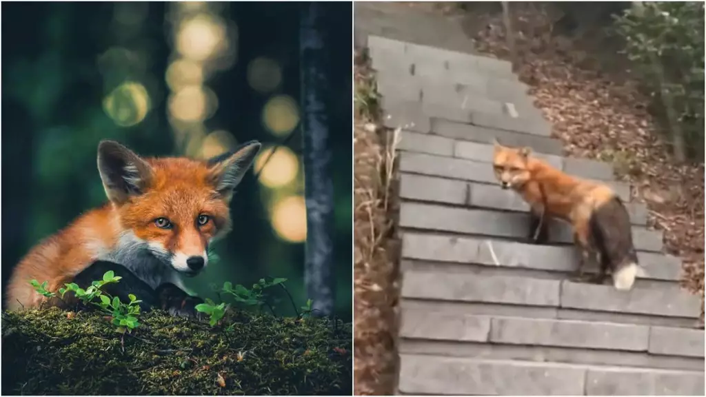男子跟著赤狐走了一段路。 網片截圖 ​