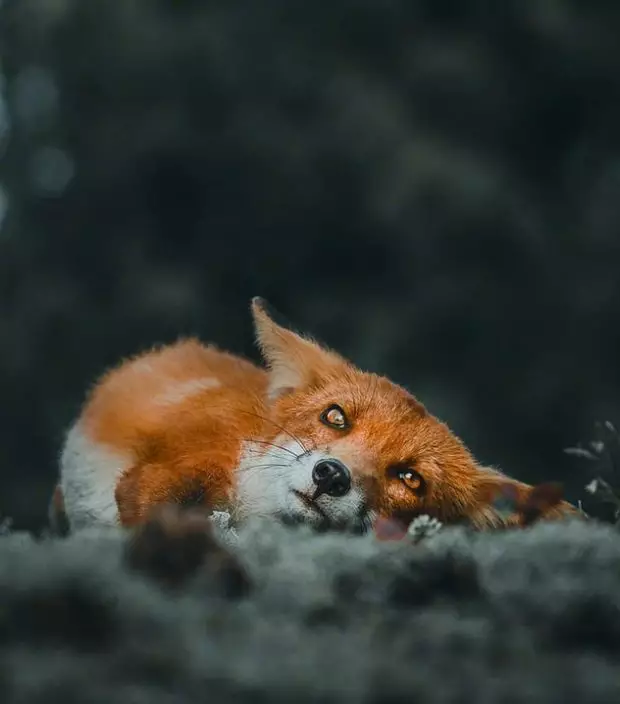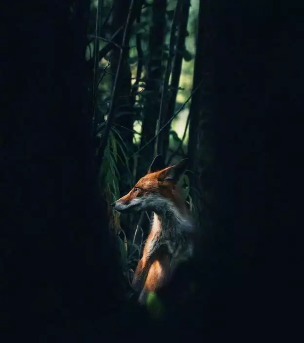 赤狐一邊向上行,一邊停下來等他,彷彿在引路。