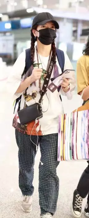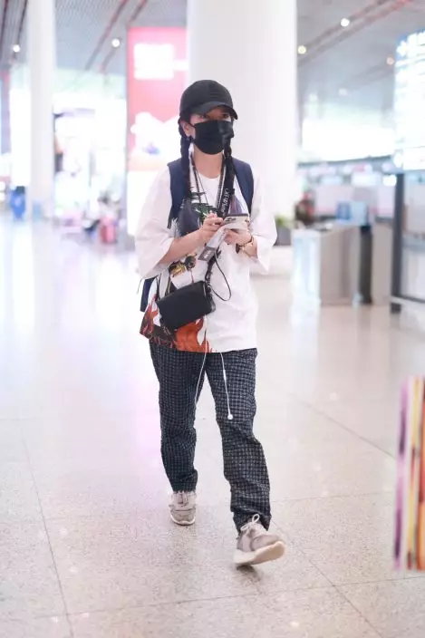 趙薇前年8月被拍到現身北京機場,頭紥兩條鬢辮的她狀態不錯。