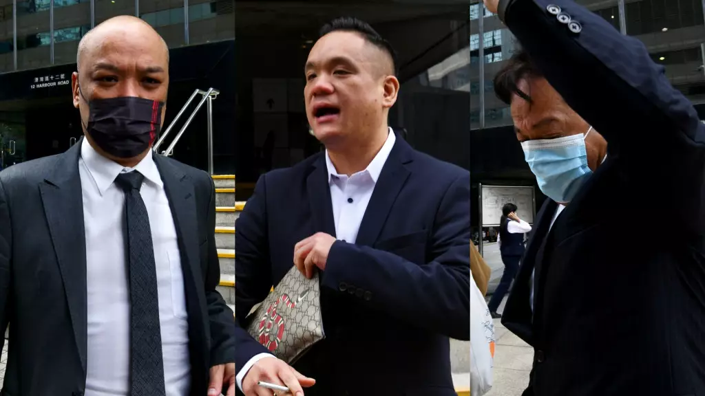 被告胡學霖(左)、張允耀(中),鄧勵東(右)。