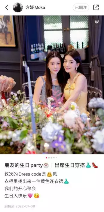 方媛在去年7月,也曾在社交網分享出席蔡天鳳生日會的照片。