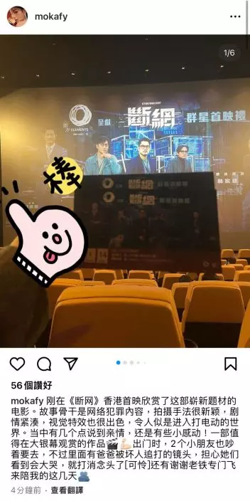 方媛之後出post,大讚老公郭富城新戲《斷網》好睇。