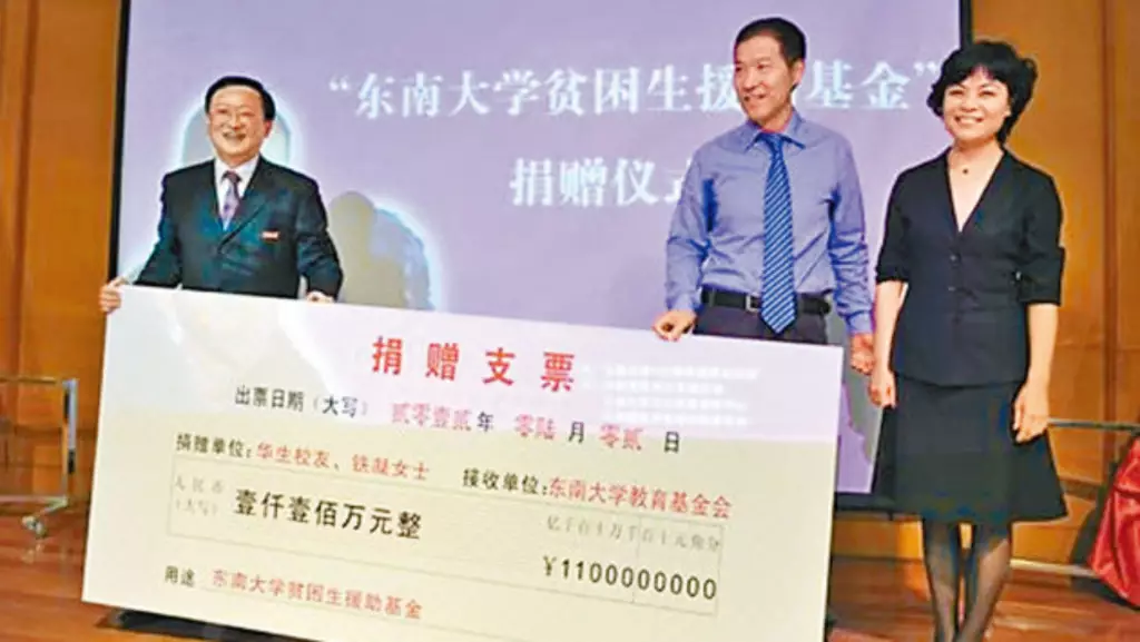 中國作家協會主席鐵凝本月10日在兩會當選為全國人大常委會副委員長,南京東南大學當日第一時間向鐵凝發布賀信,對鐵凝和她丈夫、東南大學校友華生長期的幫助和支持表示感謝。據知,2012年東大110年校慶,華生和鐵凝夫婦聯名捐贈了1100萬元(人民幣,下同),成為當時東大建校史上最大的一筆個人捐款,華生後來又捐資1.2億元用於學校建設「鐘山書院」。