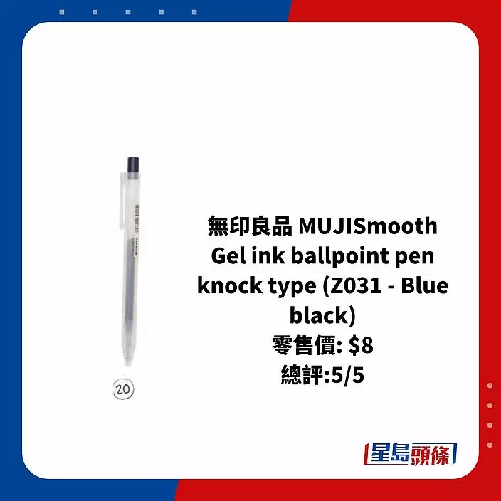 消委會啫喱筆性能評測| 無印良品 MUJISmooth Gel ink ballpoint pen knock type (Z031 - Blue black)