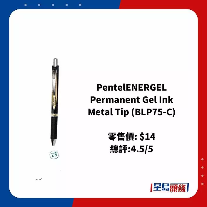 消委會啫喱筆性能評測|Pentel ENERGEL Permanent Gel Ink Metal Tip (BLP75-C)